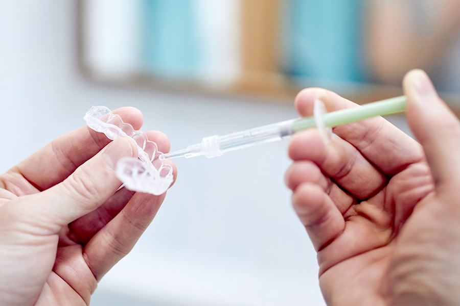 患者さま専用のマウスピースを製作し、患者さま自身がマウスピースの中にホワイトニングジェルを入れて、家で毎日一定時間装着して漂白する方法です。